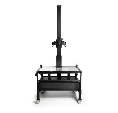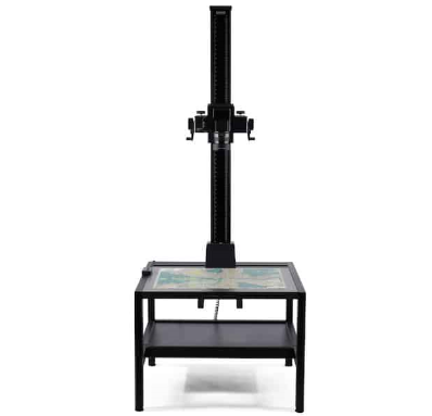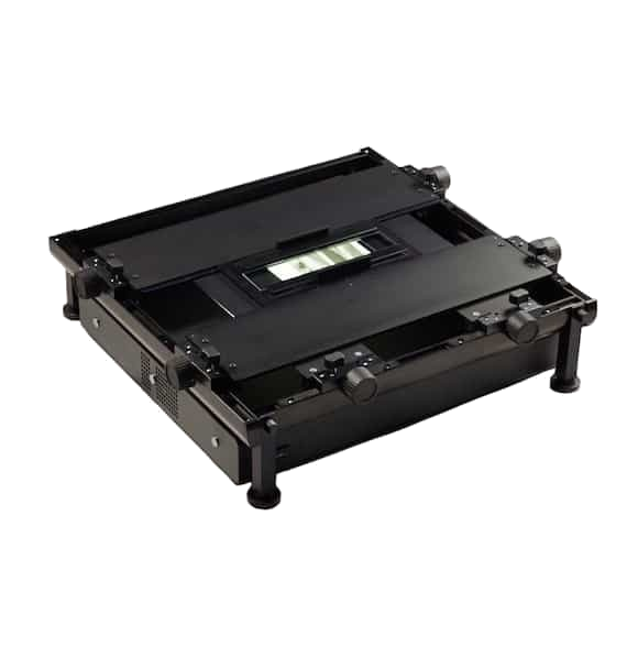 The film capture stage provides an adjustable, geared support mechanism and is compatible with a range of carriers for glass plate negatives, and most popular film strip and sheet formats. It can be easily adjusted to position the object directly under the camera.