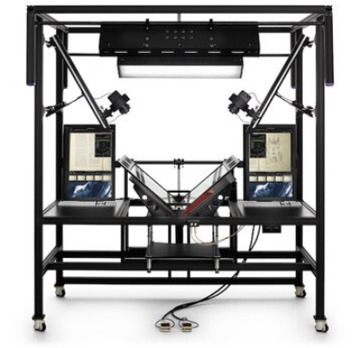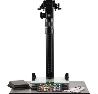 The BC100 cradle is a dedicated book capture system designed for the mass digitization of books. The V-shaped anti-reflective glass plate and adjustable book cradle secures and holds a large variety of bound materials with pa